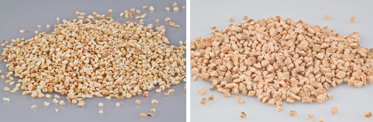 Şrotul de nuci este, ca şi şrotul de coceni de porumb, un produs natural, care constă din coji de nuci mărunţite şi cernute. Acest granulat, faţă de şrotul din coceni de porumb, prezintă o putere de absorbţie mai mică, dar se diminuează pericolul formării de praf pe suprafaţa pieselor.
